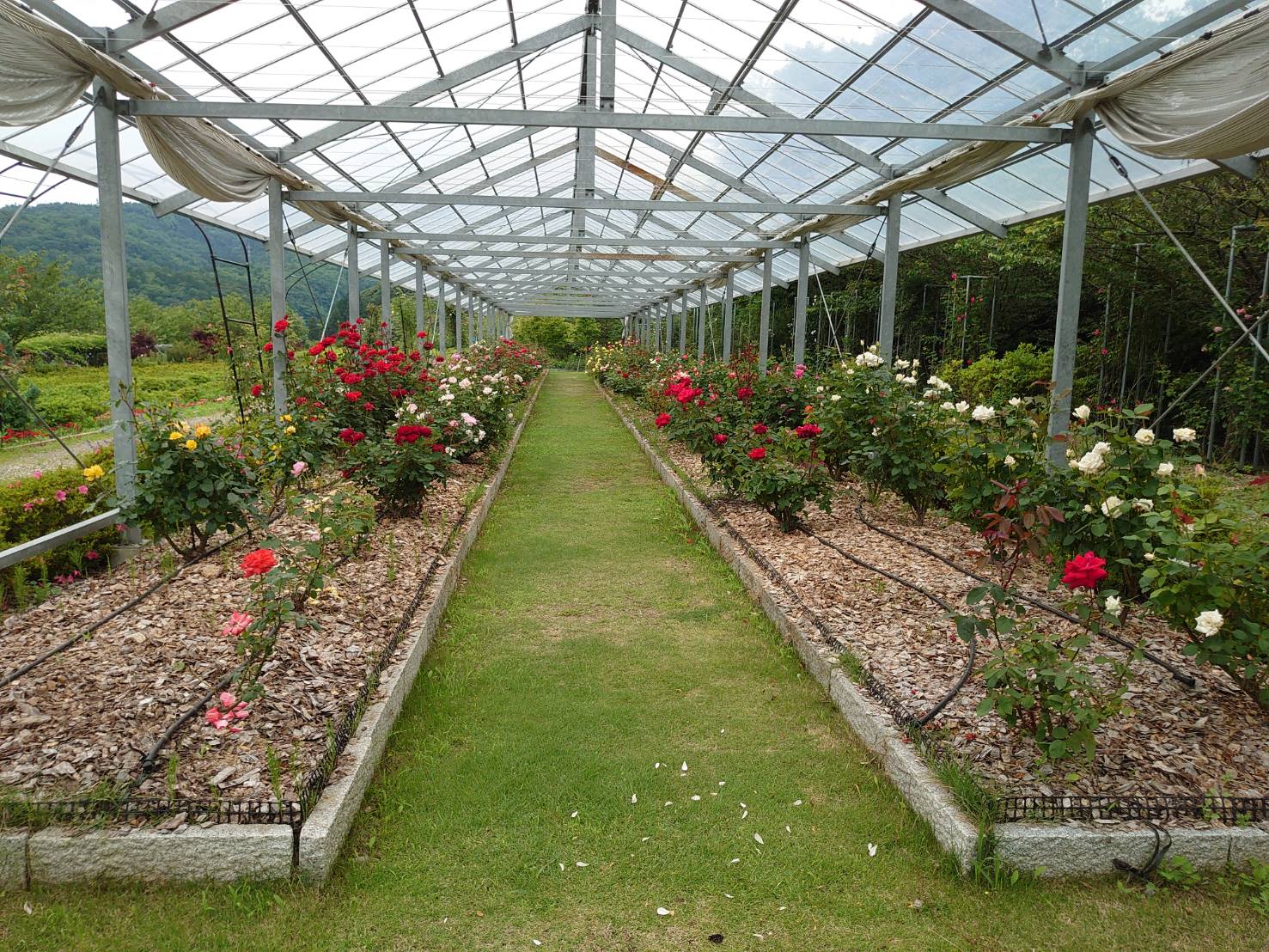 バラの開花状況は、バラ散策道は6分咲き